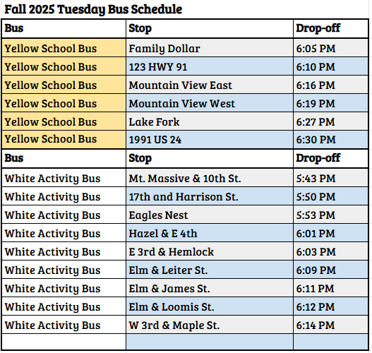 No student will be turned away due to an inability to pay tuition for a given month. If you are unable to pay tuition for a given month, please reach out to Brandon Reynolds 719-293-5093, or breynolds@lakecountyschools.net.