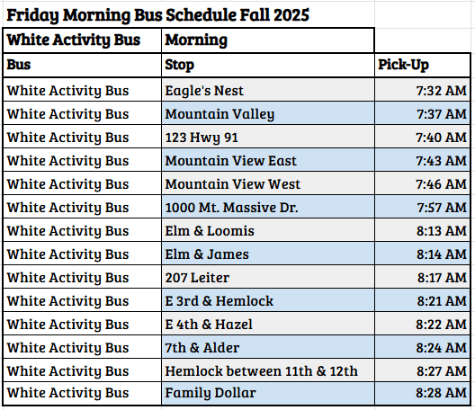To help ensure a smooth and safe bus drop-off for all students, please plan to be at your child’s drop-off location 5 minutes before the scheduled time and remain until 5 minutes after. This small window helps us make sure every student gets home safely and avoids delays.