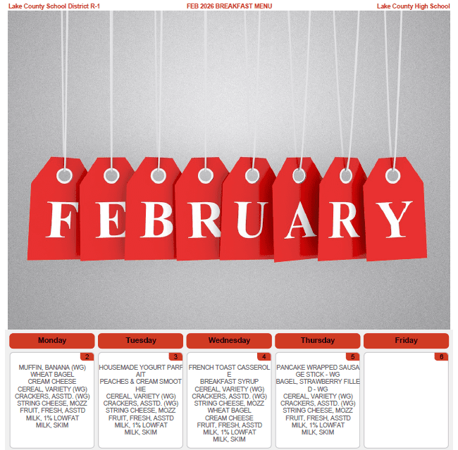 - Previous story CCHS Breakfast & Lunch Menus February 2026