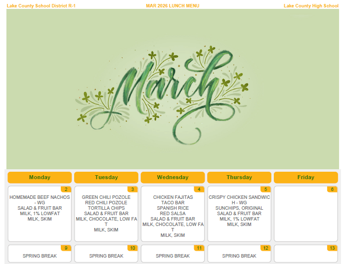 - Previous story CCHS Breakfast & Lunch Menus March 2026