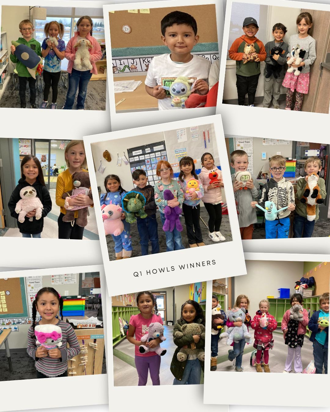 HOWLs Challenge: Congratulations to our Quarter 1 HOWLs winners! We had so much fun seeing their stuffed animals join them at school on Tuesday.
