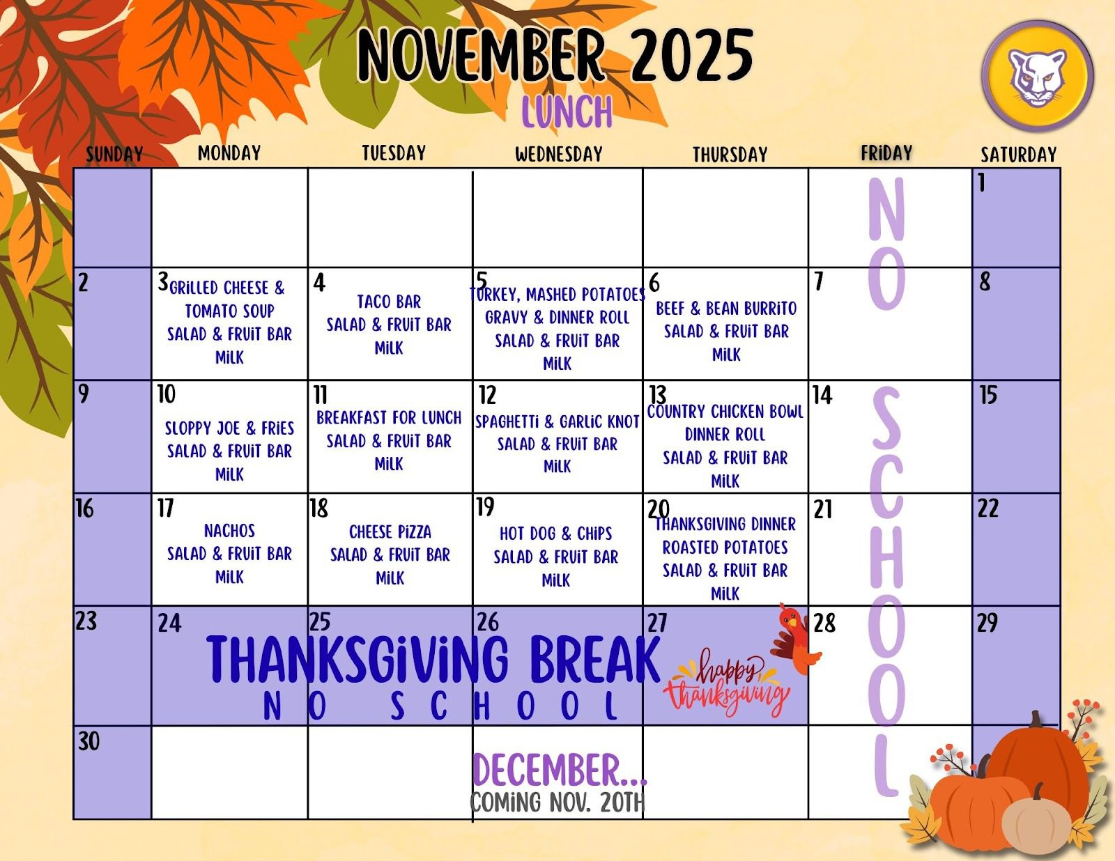 November 13: K-2 Panther Day During Specials: Thanksgiving Fun!