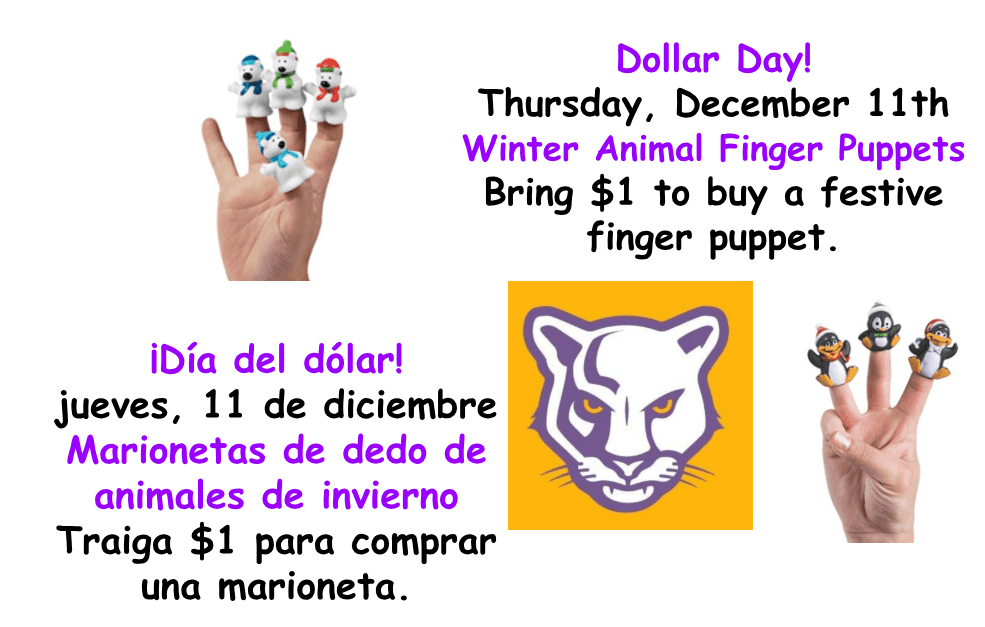 December 11: K-2 Dollar Day- finger puppets (flier below)