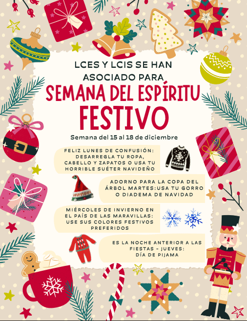 - December 15-18 – Holiday Spirit Week, fun dress up day themes for each day of the week