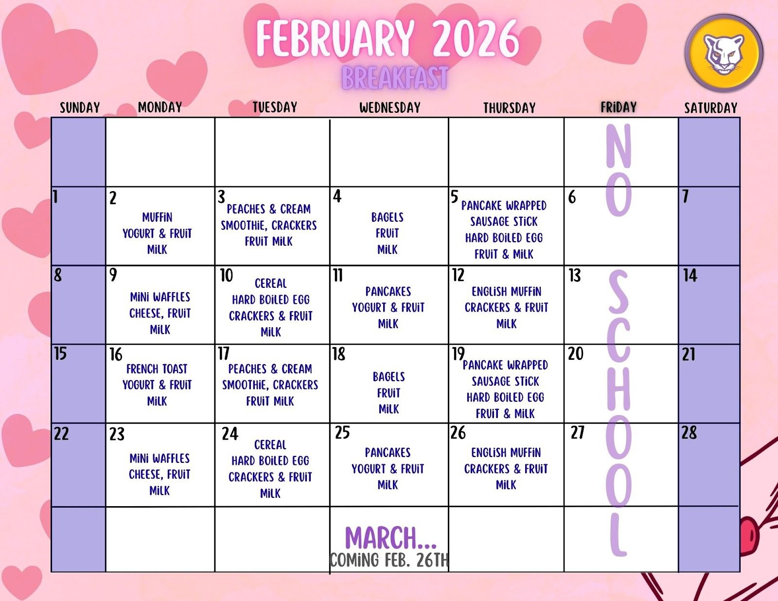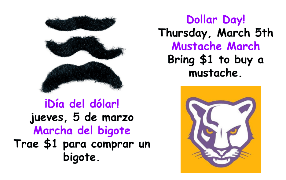 March 5: K-2 Panther Day during specials and K-2 Dollar Day