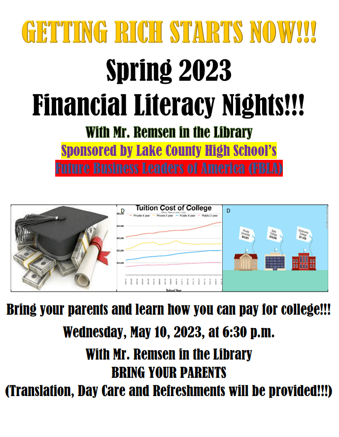 - Future Business Leaders Financial Literacy Night @ LCHS 6:30-8:00 pm