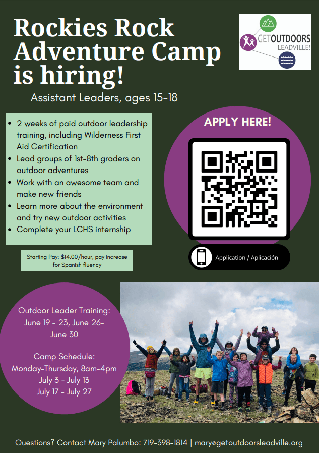 The middle school track & field league championship will be held at Homestake Peak School on Friday, May 12, beginning at 9 am. There will be an admission charge of $3/person. Payment will be accepted with cash or venmo.