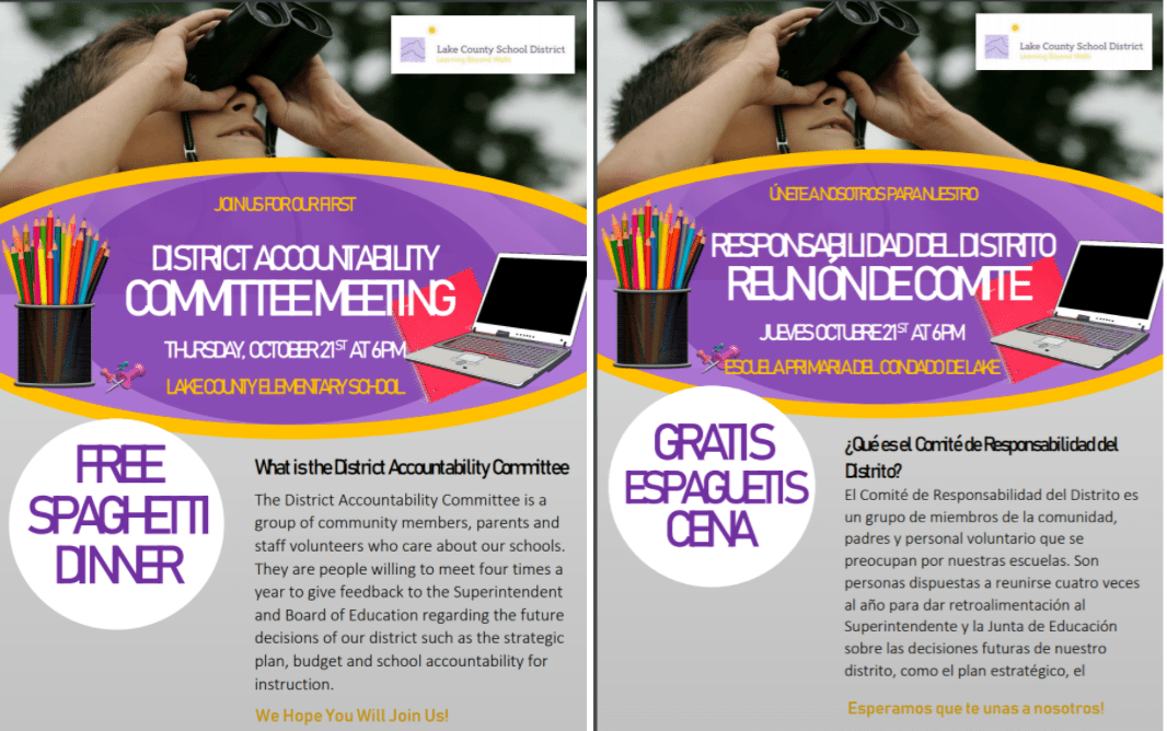 | October 21 | District Accountability Meeting and Spaghetti Dinner – LCES – 6 pm |