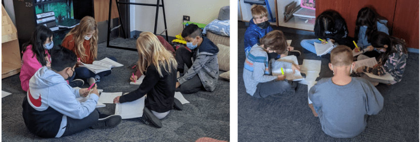In writing and English Language Arts, students in third grade are working on writing journal entries from the perspective of a 10th Mountain Division soldier. They read articles and primary sources about the experiences of the soldiers, and then apply their knowledge to their writing. They are working on incorporating similes into their writing to make it more detailed and interesting!