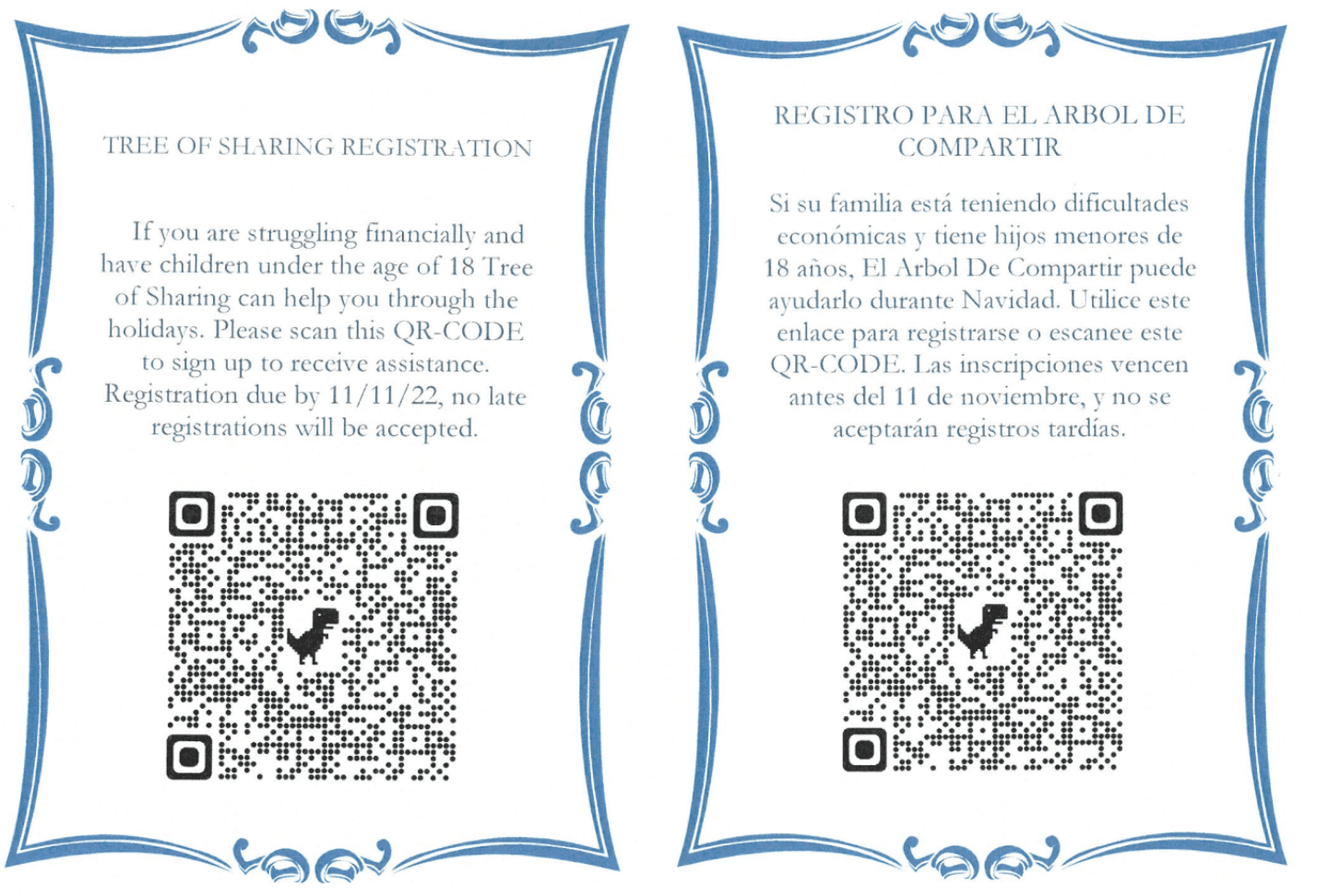 🌲The Tree of Sharing is available to help families who are struggling financially and have children under the age of 18. If you need some help during the holidays, please scan the QR code on the flier below. Registration ends today, so do this now as no late registrations will be accepted.