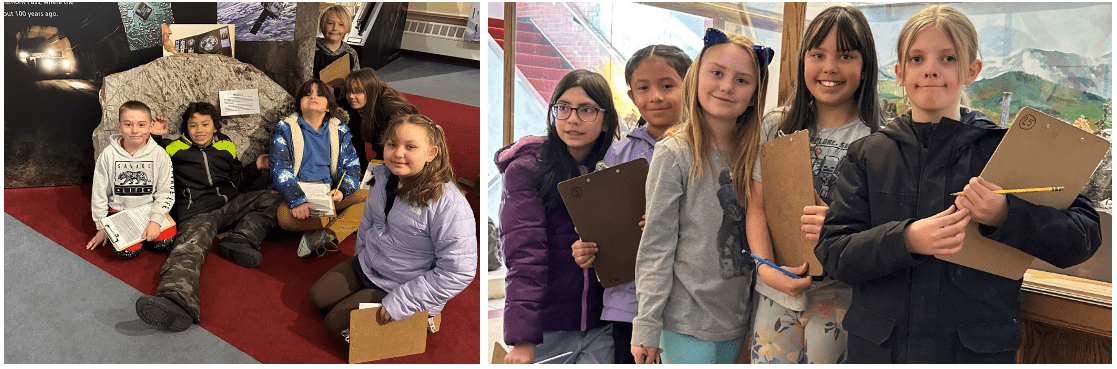 4th graders had a wonderful time at the National Mining Museum on Thursday. They’ve been immersed in a unit on geology in ELA, studying types of rocks and how different phenomena change the surface of the earth. At the museum, students explored all the exhibits in groups, answering questions in a scavenger hunt along the way. Students learned a bit about mining, the history of Leadville, and saw some very cool rocks and minerals. We are lucky to have this resource so close to LCIS! And did you know that any Lake County student receives free admission to the National Mining Museum? All they need is to have an adult with them!