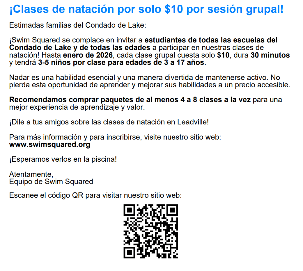 We are regularly visiting the ice skating rink at Huck Finn! Students will rent skates for free, and we do not allow students to buy snacks at the concession stand. Look out for an update about our free Family Ice Skating day hosted by Get Outdoors Leadville! In February.