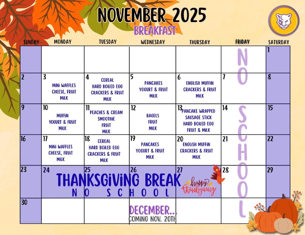 November 13: K-2 Panther Day During Specials: Thanksgiving Fun!