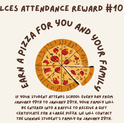 Attendance Pizza Challenge: Our next pizza attendance challenge ends next Thursday, January 29th! See details in the fliers section below!