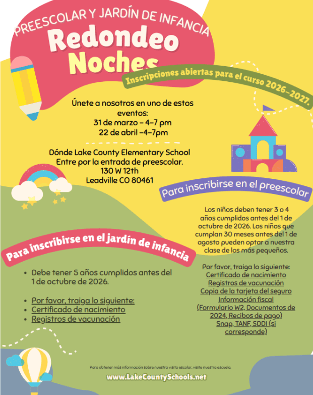 Interested or need to re-enroll in preschool for the 2026-2027 school year? Come on down to our “One and Done” Round Up Event March 31 from 5:00-7:00pm. You can fill out our application, have copies made of all needed documentation, utilize our computers for Universal Preschool, completed your necessary interview, and have all your questions answered all at once! Just come to the preschool entrance at Lake County Elementary School and we can direct you from there. Our program has accelerated our enrollment process with most of this occurring by mid-May. Submit your application without delay. Hope to see you there!